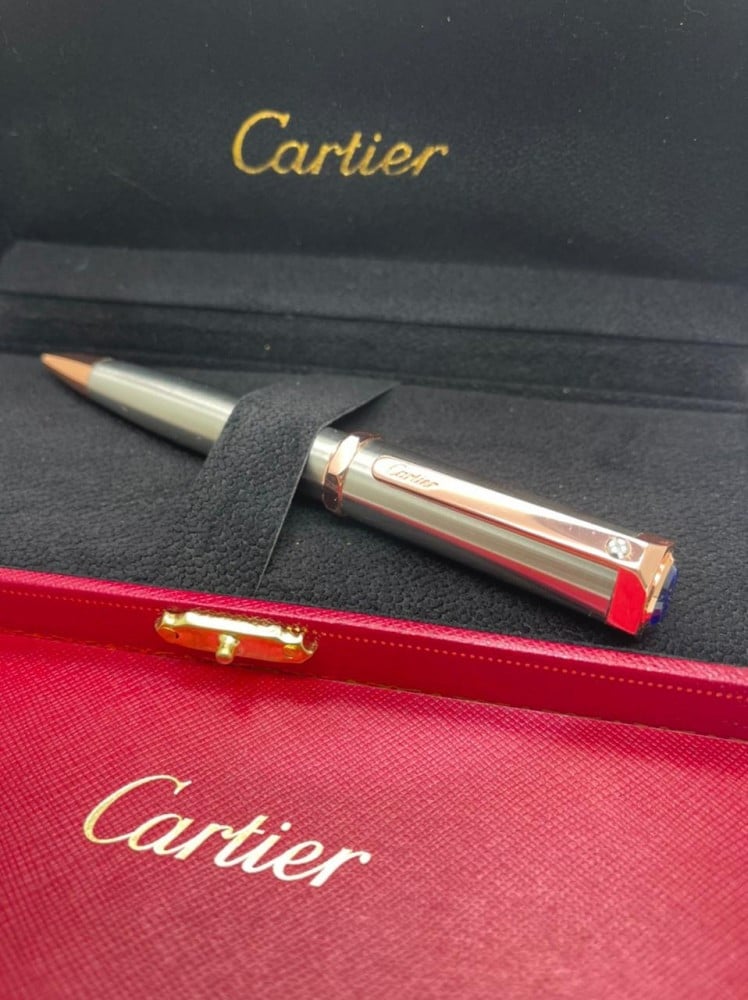 قلم ماركة كارتير فضي بأطراف نحاسية